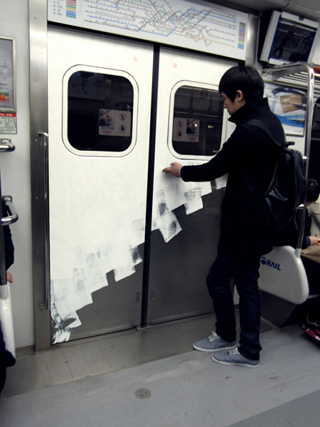This is very dangerous behavior that people lean against the car door in the subway. In fact, most of passengers rely on the car door in order to read books or relax without realizing the haphazard accidents in the subway. This is a campaign to inform and protect people from the accident. “The wet paint” sign stickers will make people not to lean against the door as people in general think that doors have been painting. Therefore, this project purposes for people to smile by touching human sense indirectly.